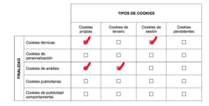 Por último, recuerde que debe actualizar la tabla del documento Política de cookies, indicando las Cookies que su página web instala con la navegación por parte del usuario.